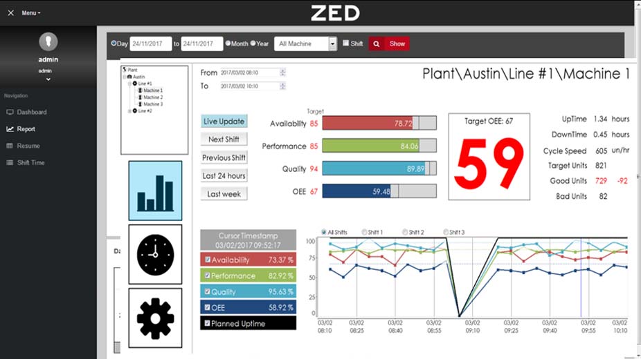 - Real-time Counting, Target, Estimate, Downtime, Setting time.